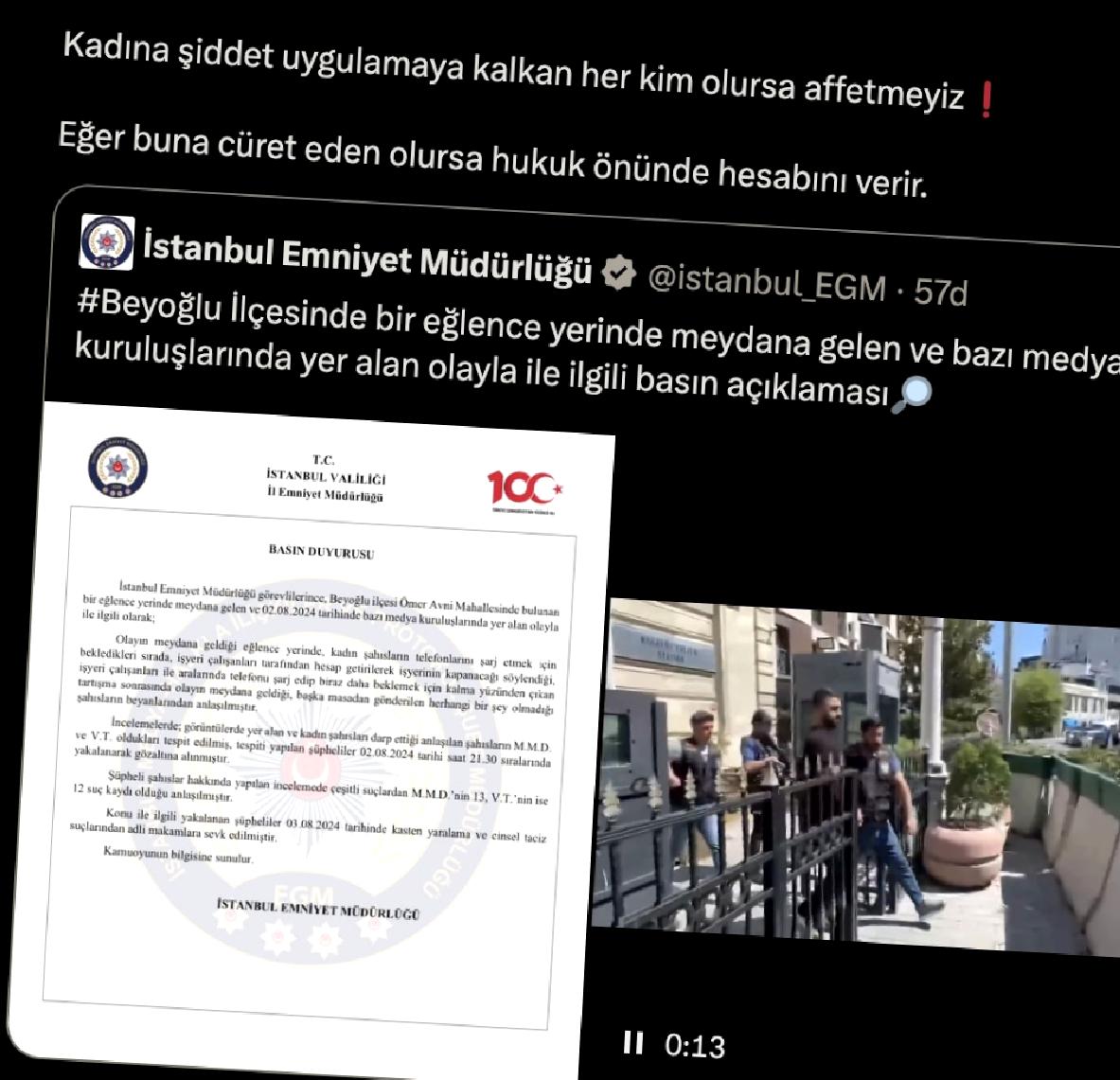 İstanbul Emniyet Müdürlüğü, bu mevzu ile ilgili yaptığı açıklamada, görüntülerde yer alan ve bayanları darbettiği anlaşılan M.M.D. ve V.T. isimli şahısların gözaltına alındığını duyurdu.